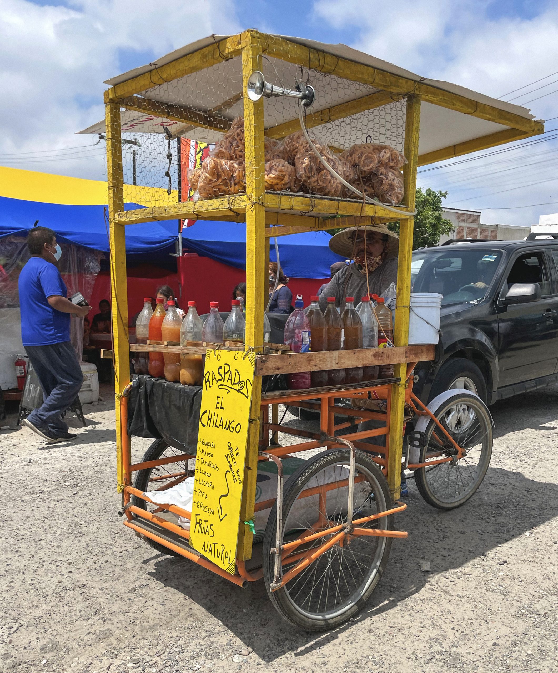The sobres, the swap meet, and the tianguis are made up of physical and social infrastructure. The way that forms of materiality are displayed, stewarded, and used as pretext of sociality, dialogue, and connection by people is what makes these spaces so special and unlike commercial spaces of malls and big box stores. The most palpable loss during the COVID-19 pandemic has been the loss of individuals who were fixtures of markets: some who were innovators of display, others who had keen curatorial eyes or a penchant for storytelling, or who were perhaps the only remaining vendor that sold a certain tool, variety of fruit, or genre of music. Some of these vendors and regular visitors to the market were on the verge of retirement and decided to sell their inventory and take a slightly earlier leave from their often decades-long job. Others succumbed to the virus, or to other ailments, during our collective retreat from public life. So we found ourselves returning to contexts that were familiar and bubbling with energy and excitement, while also holding deep melancholy, longing, and a sense of nostalgia for how and with whom we had experienced these spaces before. “The man that sold the oldies CDs passed away,” comments the young man at the front gate of the National City Swap Meet; “I don’t know if it was COVID or if he was sick for a long time, but it’s weird not to hear his stand anymore.” As we walk through the sobreruedas Pancho Villa on a Sunday afternoon, we learn that a respected tacos de canasta vendor has retired from her business. “Ya te chingaste,” says a middle aged man teasing a disappointed friend who walks the market with a caguama disguised (but not really) in a paper bag that would have contained his tender basket-taco lunch.